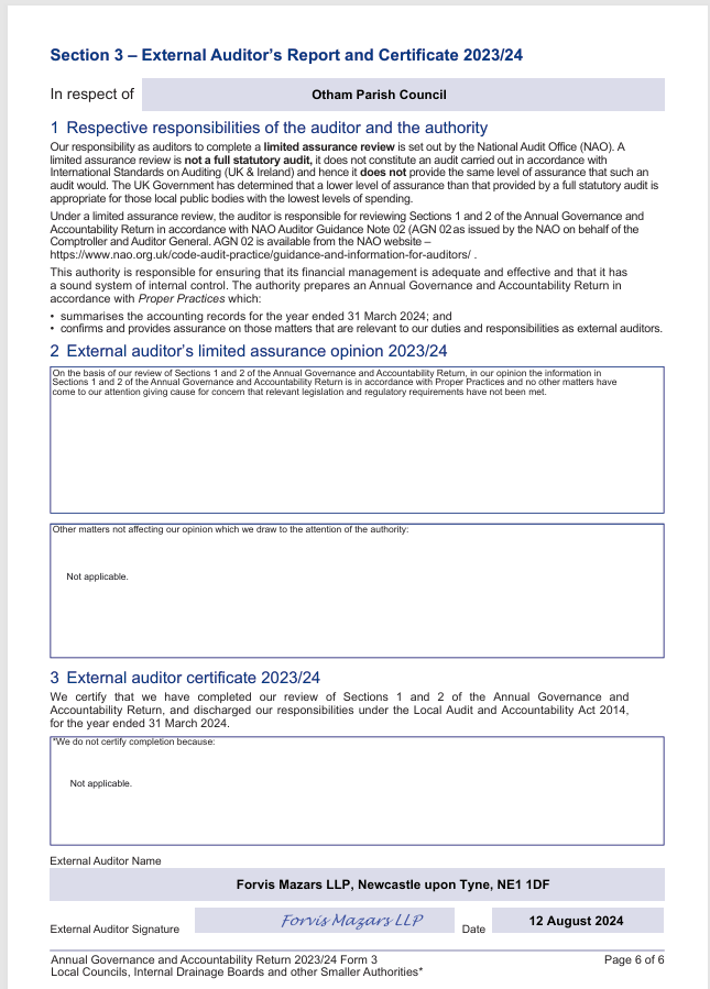 Once approved by Full Council, all expenditure will be published on the website. This exceeds the minimum requirement of the Data Transparency Code to publish expenditure items over £500 on a quarterly basis.